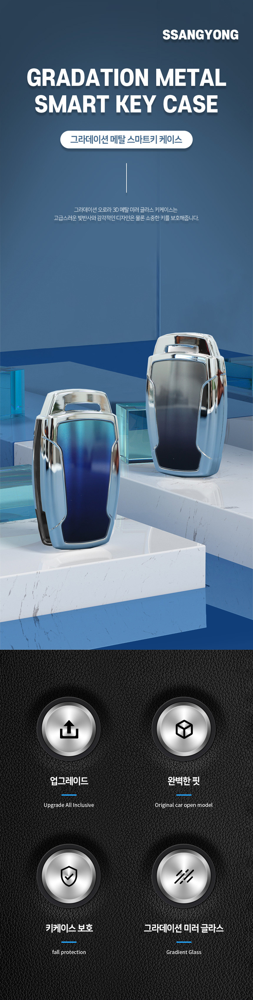 쌍용 3버튼 전용그라데이션 메탈 유리 스마트키 케이스
