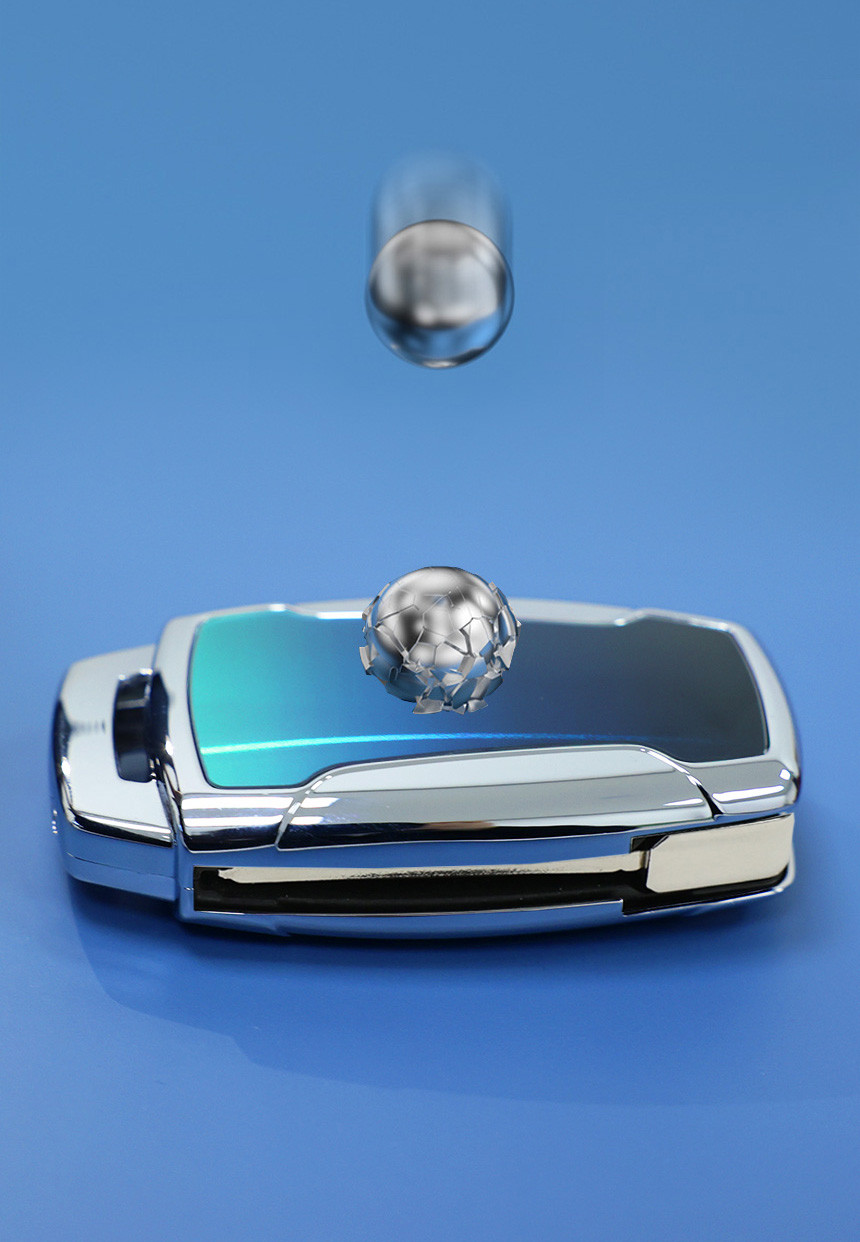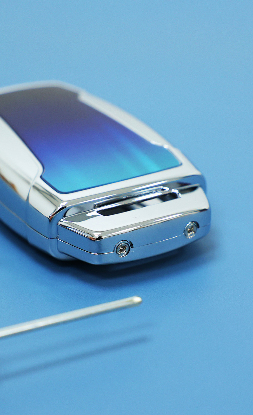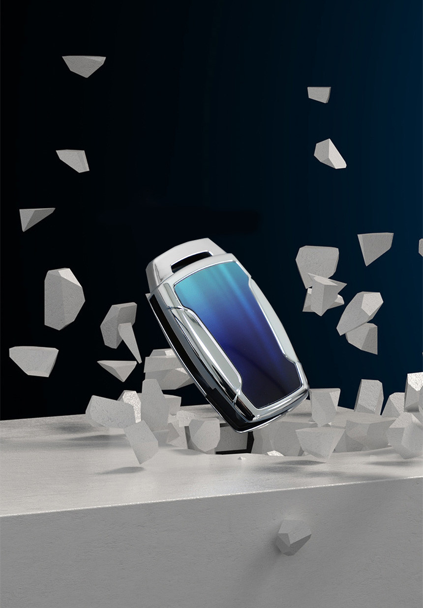 각도에 따라 변하는 3D 그라데이션 글라스빛 반사와 각도에 따라 변화되는 에메랄드 빛을 머금은그라데이션 디자인은 차 키를 더욱 고급스럽게 만들어줍니다.