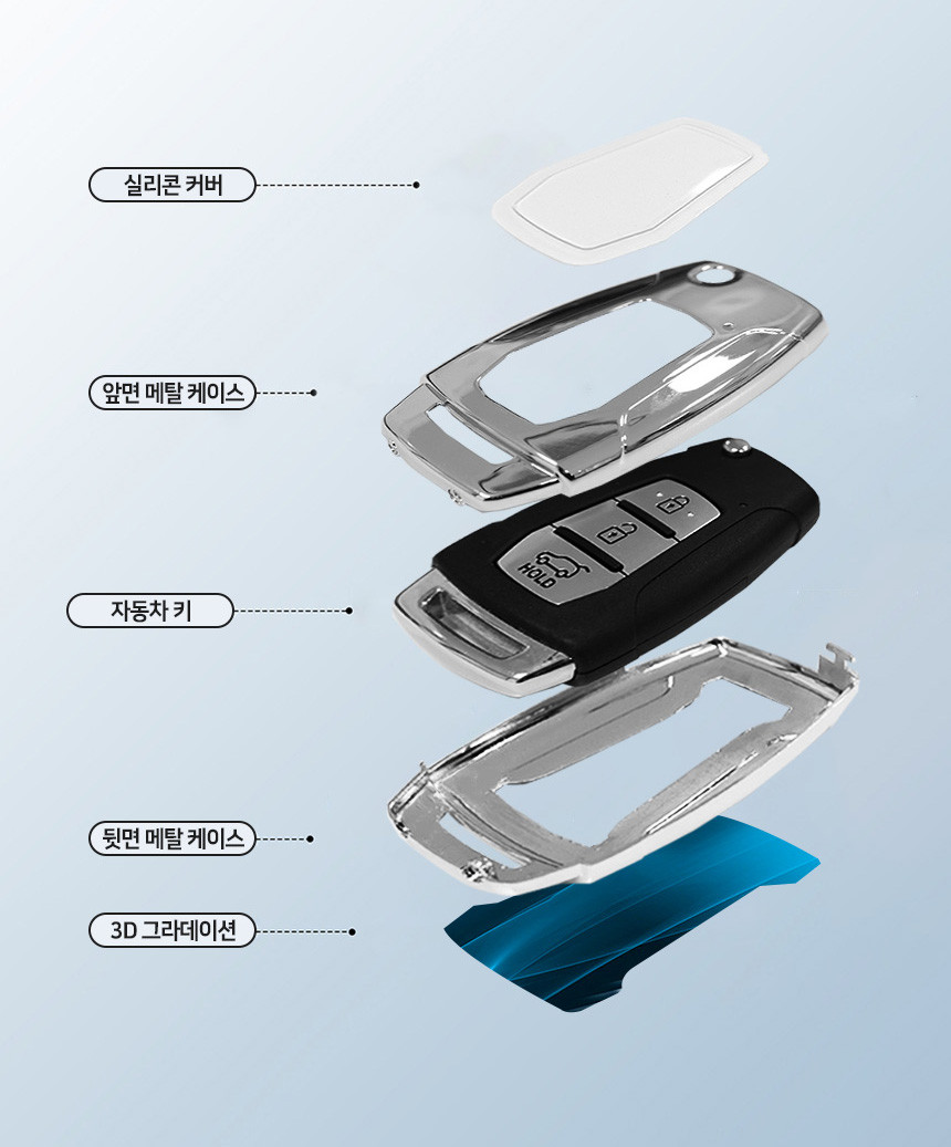 스크래치 걱정없는 스마트키 완벽 보호앞면, 뒷면 메탈 케이스와 실리콘 커버로 충격을 방지해주며,스크래치 걱정없이 완벽 보호합니다.