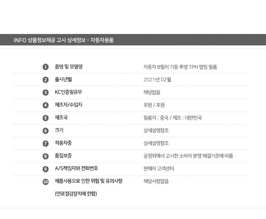 • 제조국/제조자 (수입품의 경우 수입자를 함께 표기)