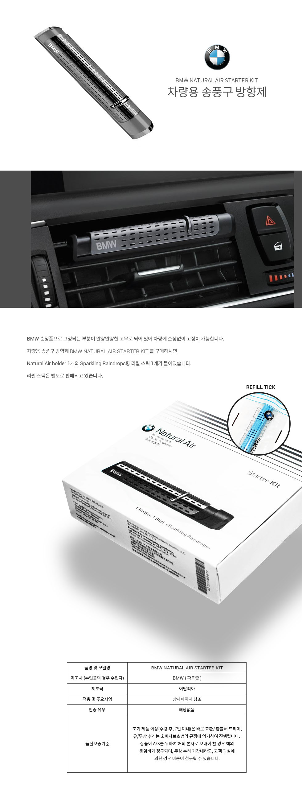 - BMW 정품 방향제 스타터 키트, 스틱+홀더